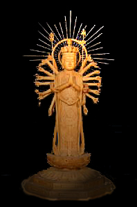 二百二十体余りの一刀彫の仏像の中の十一面観世音菩薩像は、優しさ、悲しみ、怒りを、