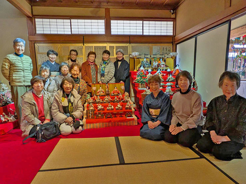 | 3月8日(日)、上田電報電話局時代のお雛さまが飾られている坂城町の「坂木宿ふるさと歴史館」を電電公社時代の元乙女14名で訪れました。 14名は、昨年8月末、NTT上田ビル6階の和室押し入れの中で、静かに眠っていた「お雛さま」をふるさと歴史館に寄贈する事に携わった人達です。 (人形供養・処分する寸前、お雛さまをなんとか生かす方法はないかとの活動に関わった仲間でした。) 古代雛、御殿雛などの説明を歴史館の遠山邦子さんからお聞きし、飾っていただいた「宿直室のお雛さま」と写真に収まりました。 |