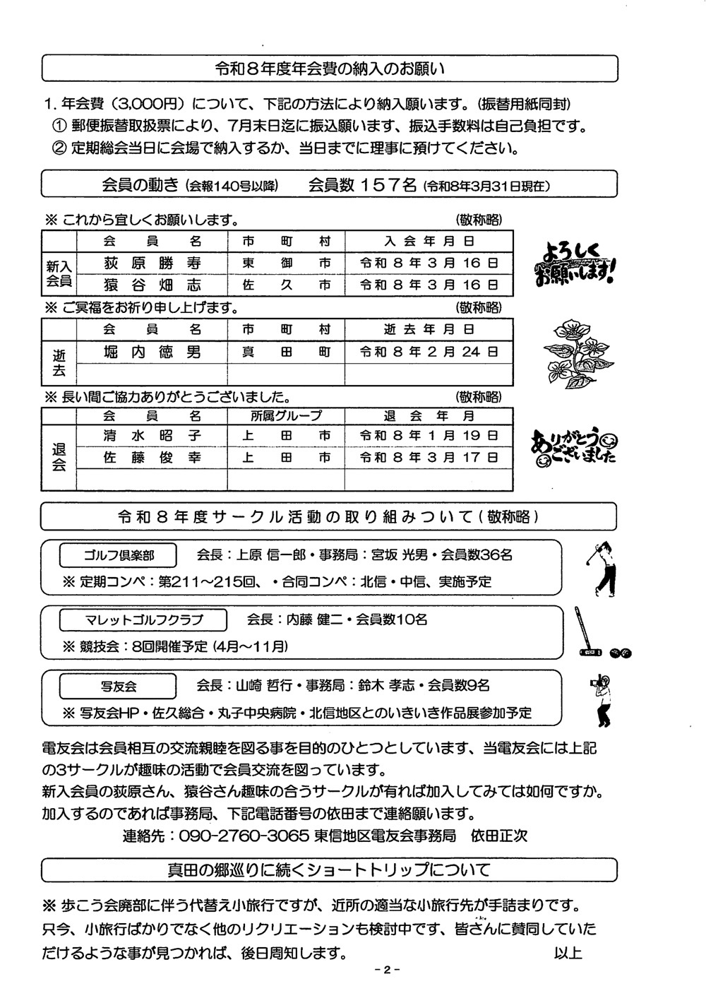 戦国武将として智謀・知略に長け【日の本一の兵】を率いた真田氏発祥の地である真田町の名所旧跡を訪ね、真田温泉で疲れを癒し食卓を囲み懇親を深めようではありませんか。多くの会員の皆様のご参加をお待ちしております。