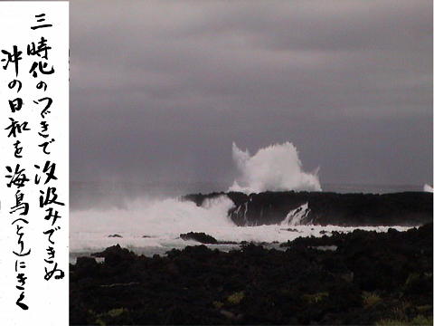 時化のつづきで 汐汲みできぬ 沖の日和を海鳥にきく