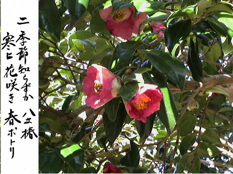 季節知らずか 八丈椿 寒に花咲き 春ポトリ