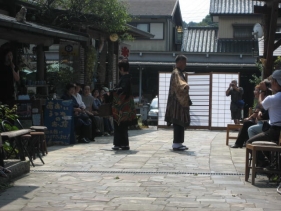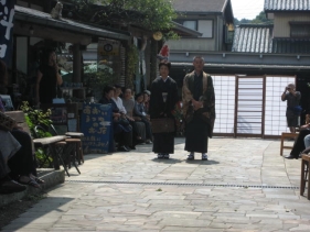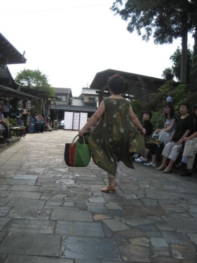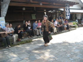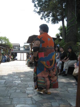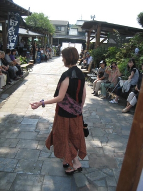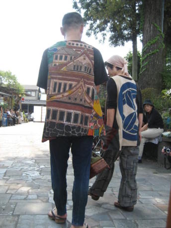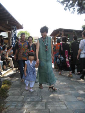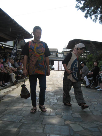 ↑ のぼり旗を柿渋で染めてあるそうです。