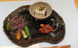 | ↑@前菜盛り合わせ ・夏野菜の酢味噌和え ・手作り豆腐 ・ピーナツ味噌 |