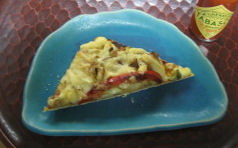 ↑A手作りピザ ポテト&ベーコン、他 野菜たっぷり (女性や若いお客様に喜ばれています) |
